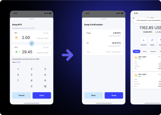 We developed a hybrid mobile application for iOS and Android on top of a web platform backend system. In order to allow users to seamlessly perform their trading operations without getting stuck in navigation, we focused on thoughtful, intuitive design with clear user flows. As a result, even an inexperienced user can easily buy, sell, send, receive, or swap digital assets in BTC, ETH, BCH, LTC and a few other currencies.